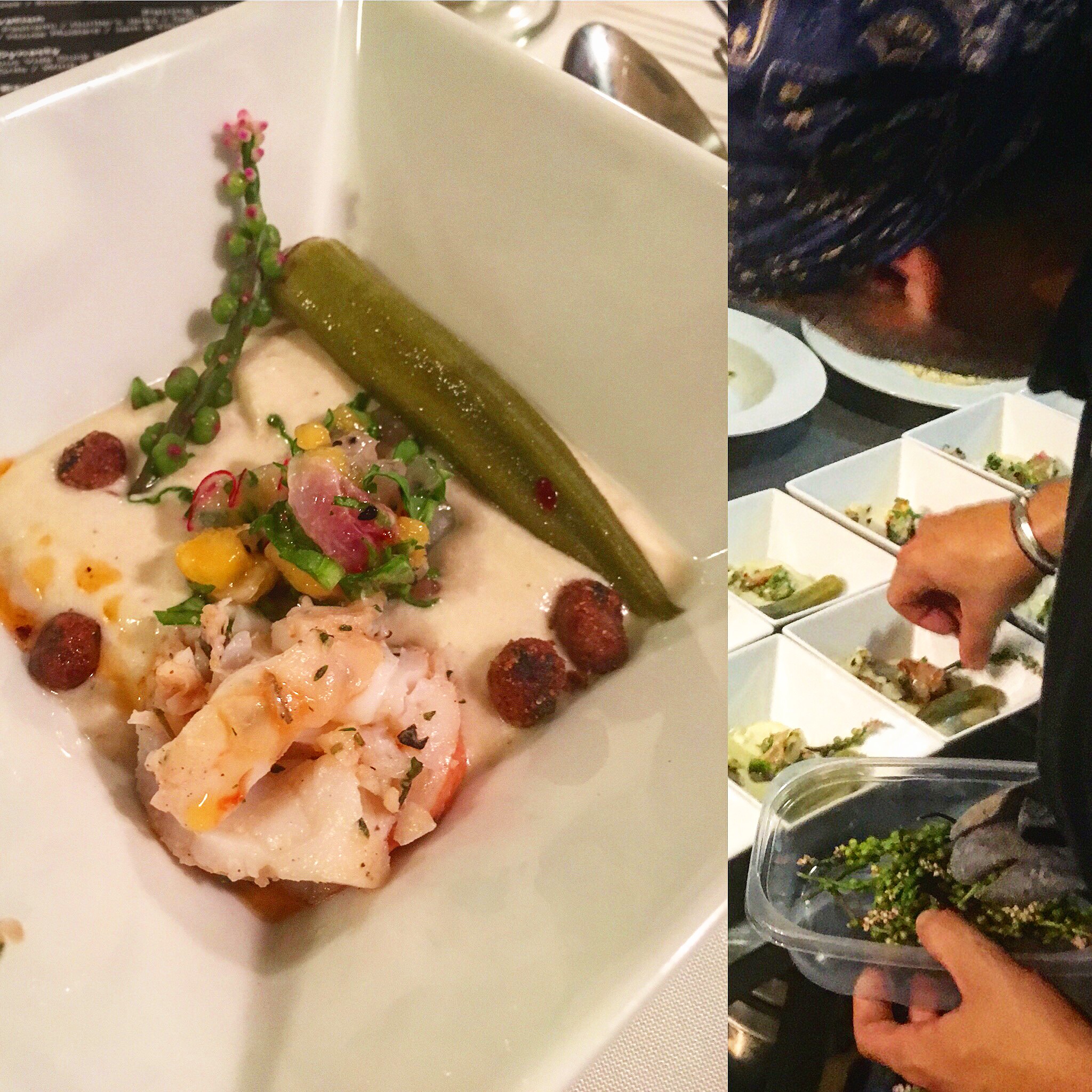 img_6561 Published October 18, 2016 at 2048 × 2048 in Robert Mondavi Full Moon Dinner ← Previous Next → First Course: Coconut Celeriac Vichyssoise – Grilled&Chilled Caribbean Lobster – Snapper Escabeche – Pickled Okra (from our garden) – Crispy Black-eyed Peas